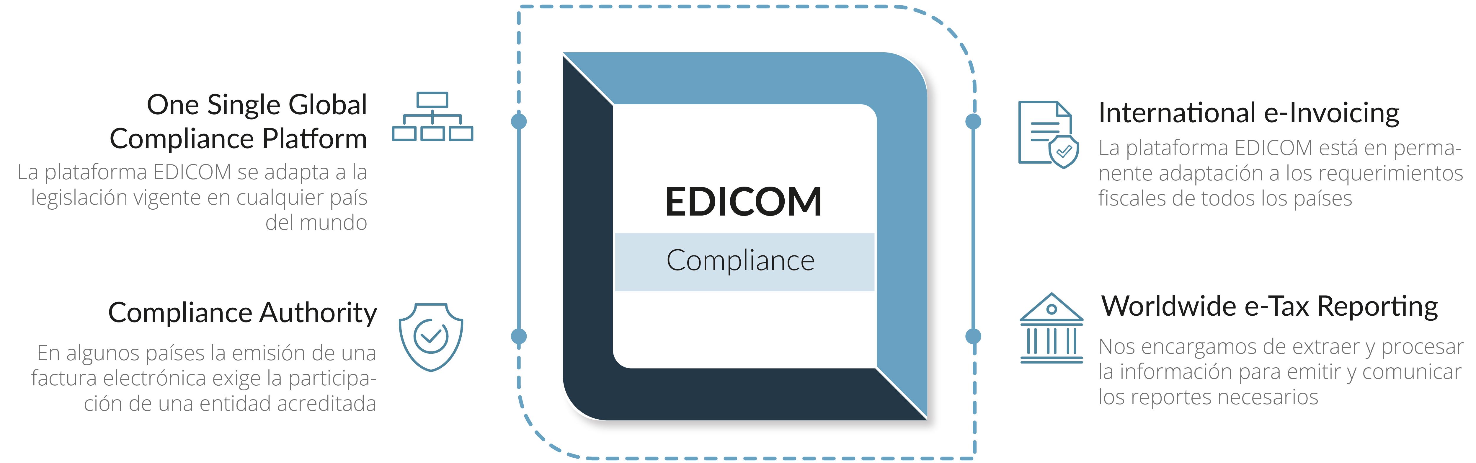 Estas estructuras serán, una vez recibidas en EDICOMPlatform, procesadas por nuestros servicios de transformación y validación de datos, seleccionando en cada caso los datos requeridos para desplegar todos sus proyectos de intercambio electrónico de datos (EDI), integración de aplicaciones facturación electrónica en uno o varios países o reporting fiscal en conforme a la normativa vigente en todos los países donde opere.